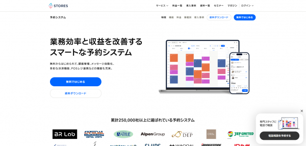 80,000店舗以上の導入実績を誇る総合力の高い予約システムです。無料プランでも月50件まで予約を受け付けることができ、有料プランでは豊富な機能が利用可能です。