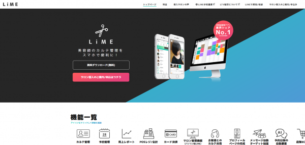 美容業界に特化した予約システムで、5,000店舗以上の導入実績があります。サロン運営に必要な機能がパッケージ化されているのが特徴です。