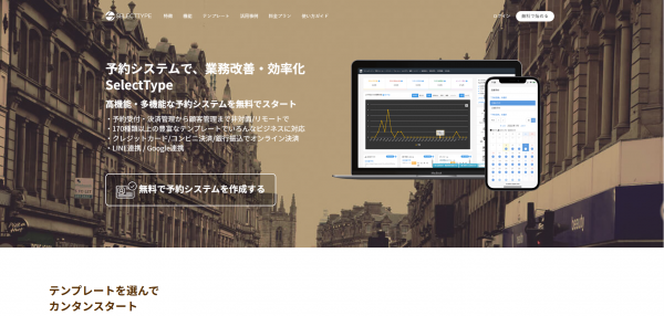 170種類以上のテンプレートから選択でき、HTMLの知識なしでも美しい予約サイトを作成できます。月額3,000円からの低価格でありながら高機能です。